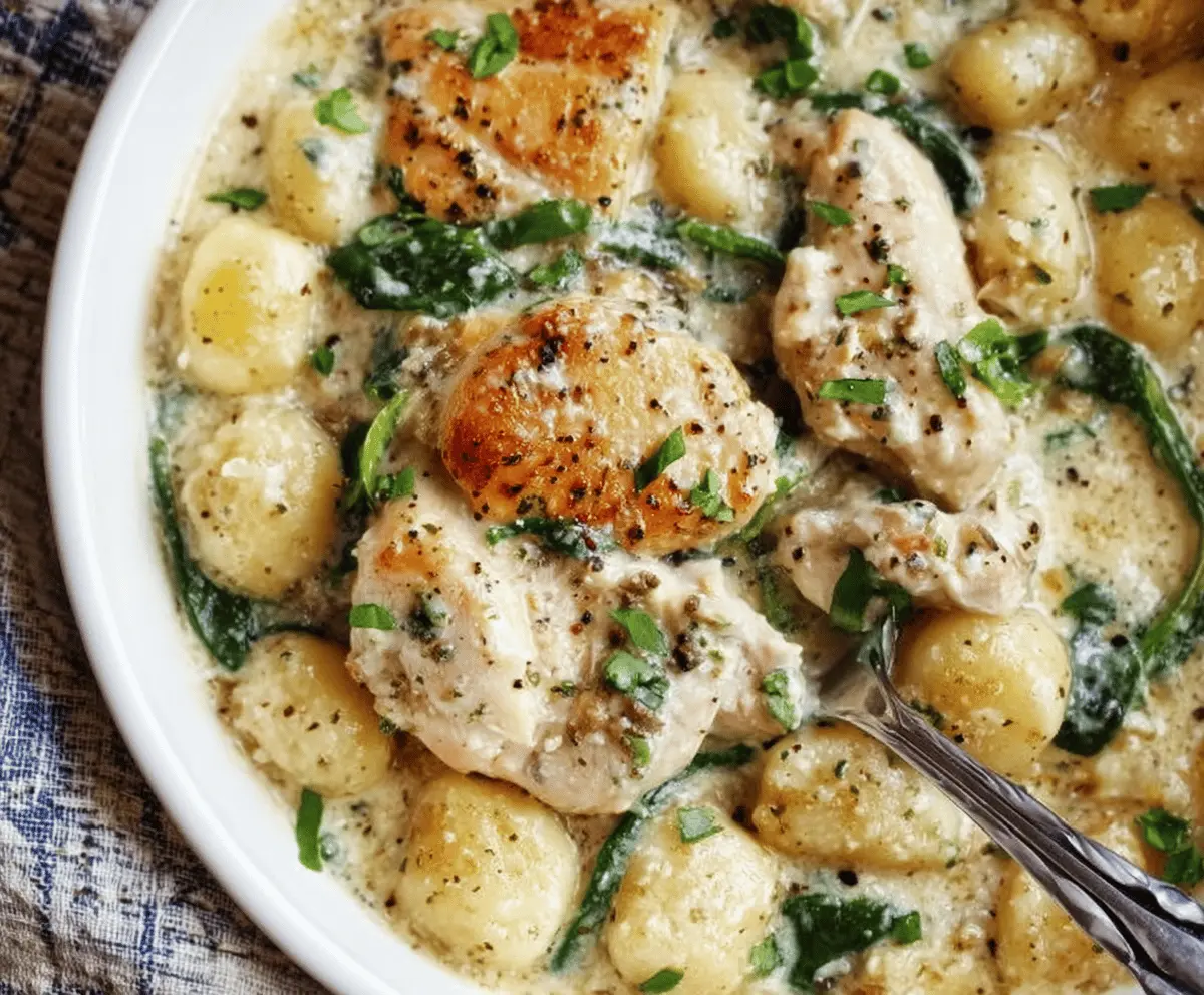 Asiago Chicken Gnocchi is a delightful dish that combines tender gnocchi with juicy chicken pieces, all coated in a creamy Asiago cheese sauce. The gnocchi have a soft, pillowy texture that pairs perfectly with the rich, cheesy flavors from the Asiago. It’s a perfect comfort meal that feels both special and satisfying.