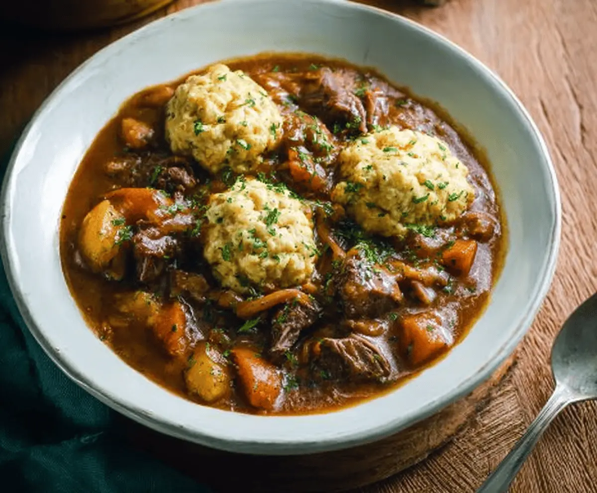 Beef Stew with Dumplings is a hearty, comforting dish that’s perfect for chilly days. Tender chunks of beef slowly cooked with carrots, potatoes, and onions create a rich and flavorful stew, while soft, fluffy dumplings gently poach on top, soaking up all those delicious juices.