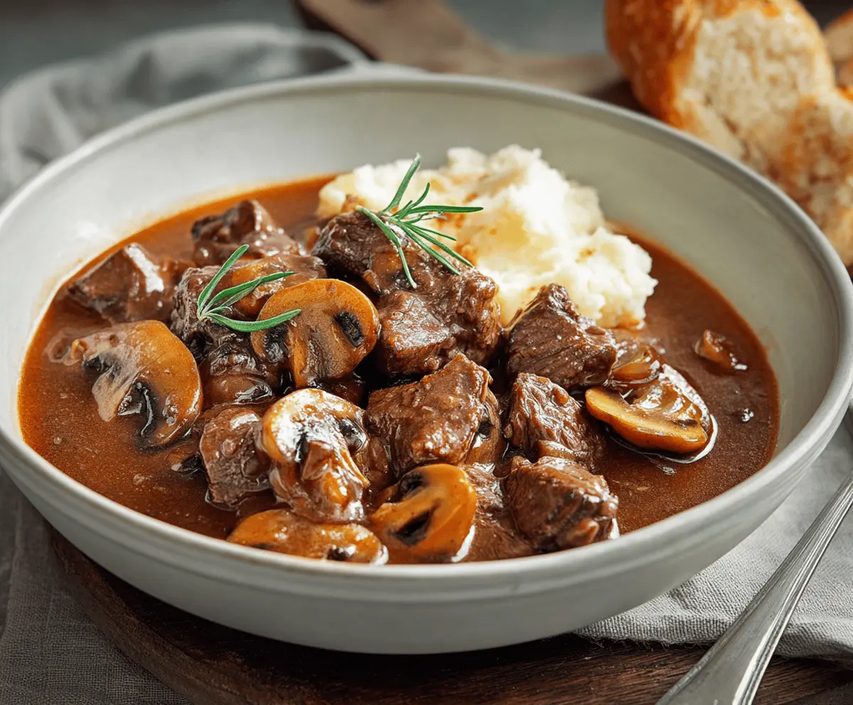 Beef Stew with Mushrooms is a hearty and comforting dish that brings together tender chunks of beef, earthy mushrooms, and a rich, flavorful broth. The mushrooms add a wonderful depth and texture, soaking up all the tasty juices as everything simmers slowly to perfection.