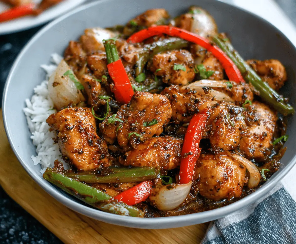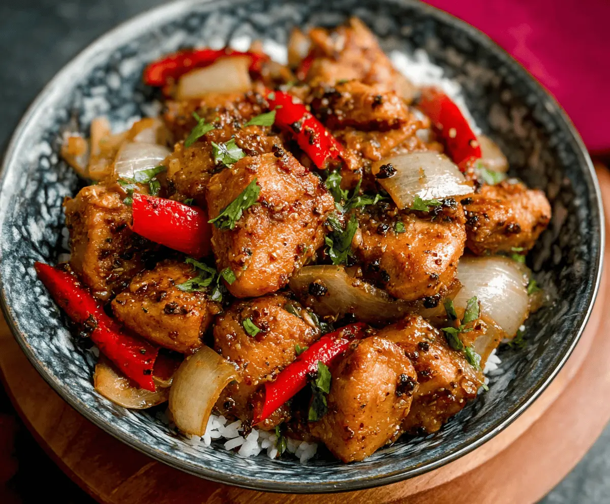 Black Pepper Chicken is a wonderful dish bursting with bold flavors and tender pieces of chicken coated in a lively black pepper sauce. The peppery kick combines perfectly with a savory blend of soy sauce, garlic, and a hint of sweetness to create a meal that feels both comforting and exciting. It’s one of those dishes where the spices really wake up your taste buds without being overpowering.