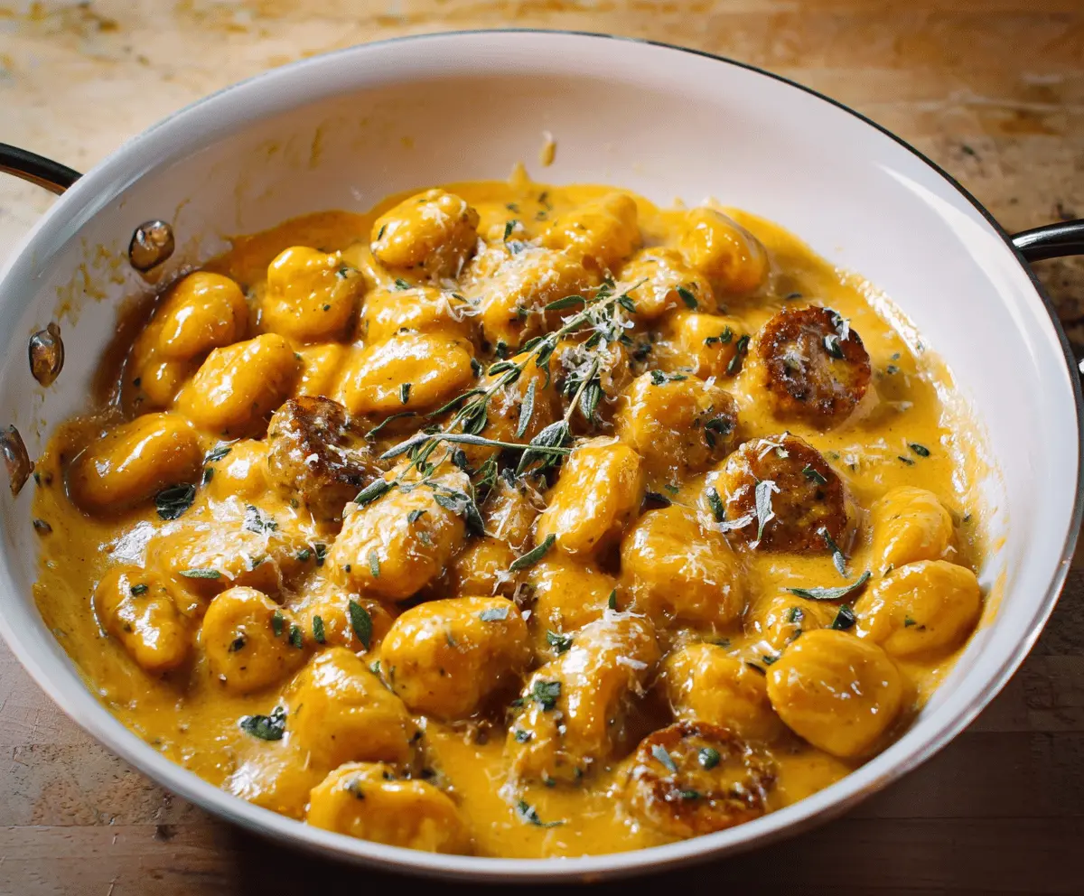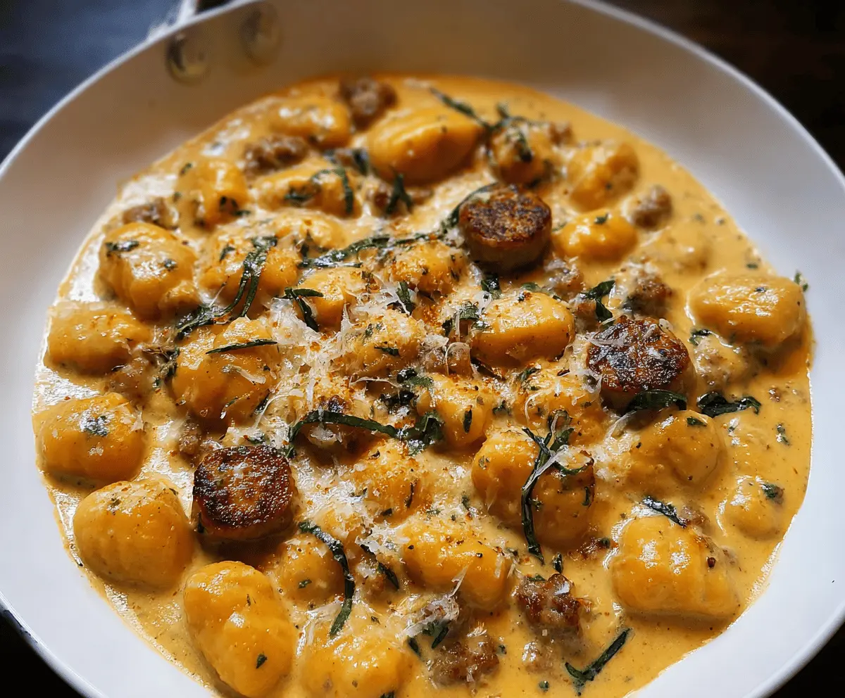Creamy Butternut Squash Gnocchi with Sausage is a cozy and comforting dish that brings together soft, pillowy gnocchi and the slightly sweet, nutty flavor of butternut squash. The rich cream sauce adds a smooth touch, while the savory sausage gives every bite a satisfying, hearty twist. It’s a perfect balance of creamy, sweet, and savory all in one plate.