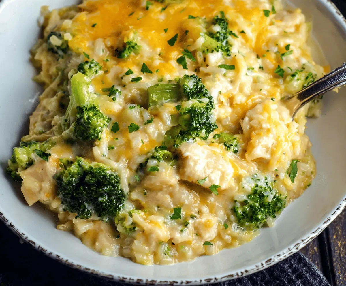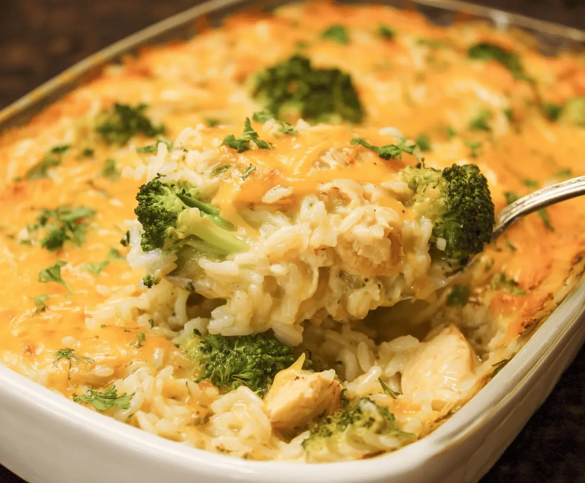 Creamy Chicken Broccoli Rice Cheese Casserole is a comfort food classic that brings together tender chicken, fresh broccoli, fluffy rice, and gooey melted cheese all baked in a creamy sauce. It’s creamy, cheesy, and packed with simple ingredients that feel like a warm hug on a plate.