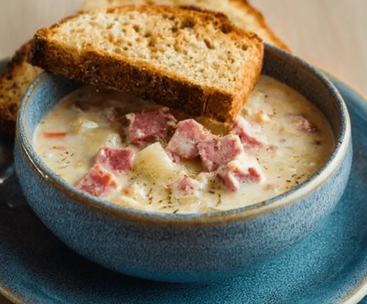 Sauerkraut: Its tangy bite balances the soup’s creaminess perfectly. Drain it well before adding to avoid watering down the soup. If sauerkraut isn’t your thing, try finely chopped pickles for a similar zing.