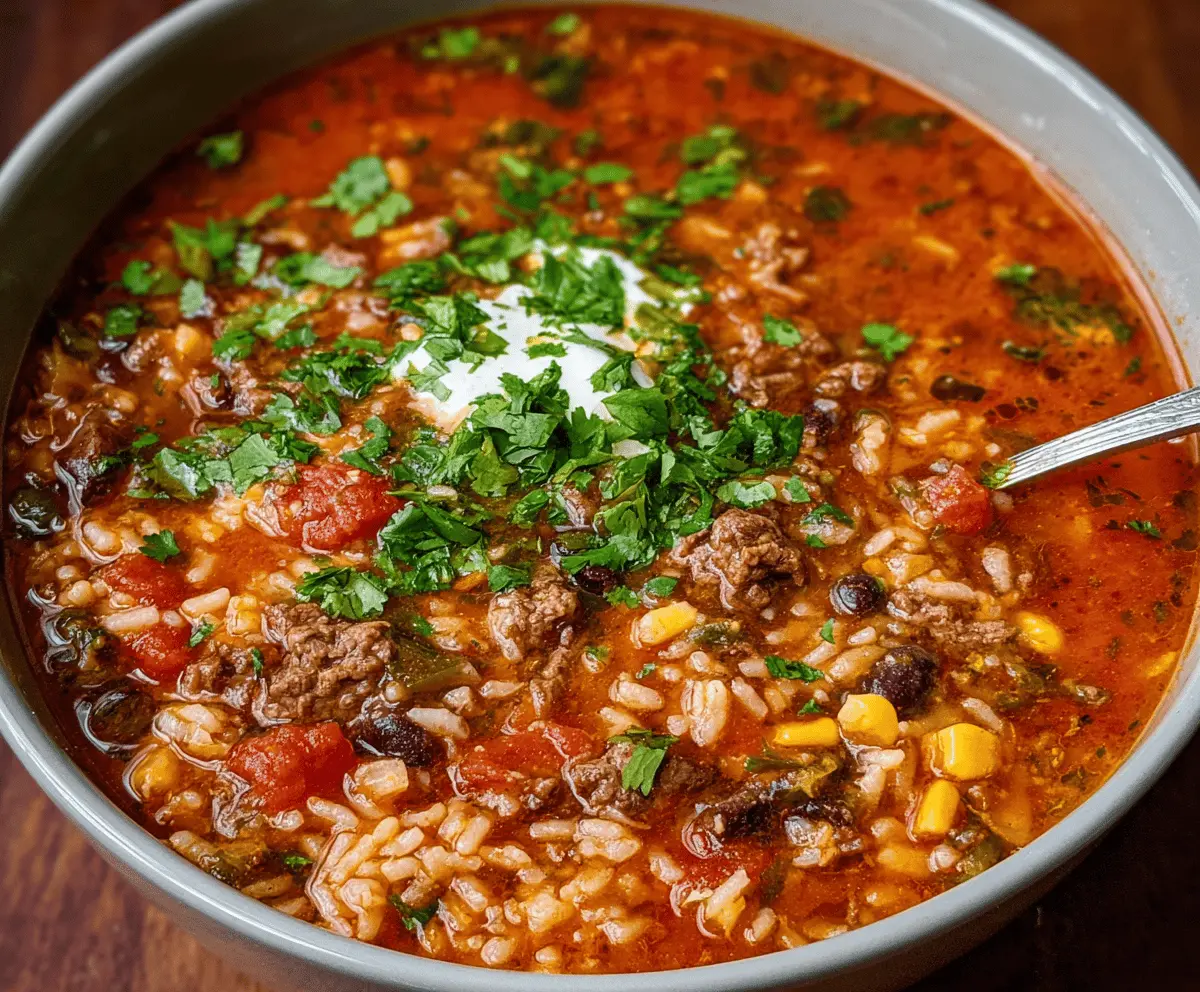 Mexican Beef and Rice Soup is a hearty and comforting dish packed with tender beef, fluffy rice, and a wonderful mix of spices that create that classic Mexican flavor. It’s the kind of soup that warms you up from the inside out with its rich broth, hints of cumin and chili, and a little kick of garlic and onion. This soup feels like a big, cozy hug on a chilly day.