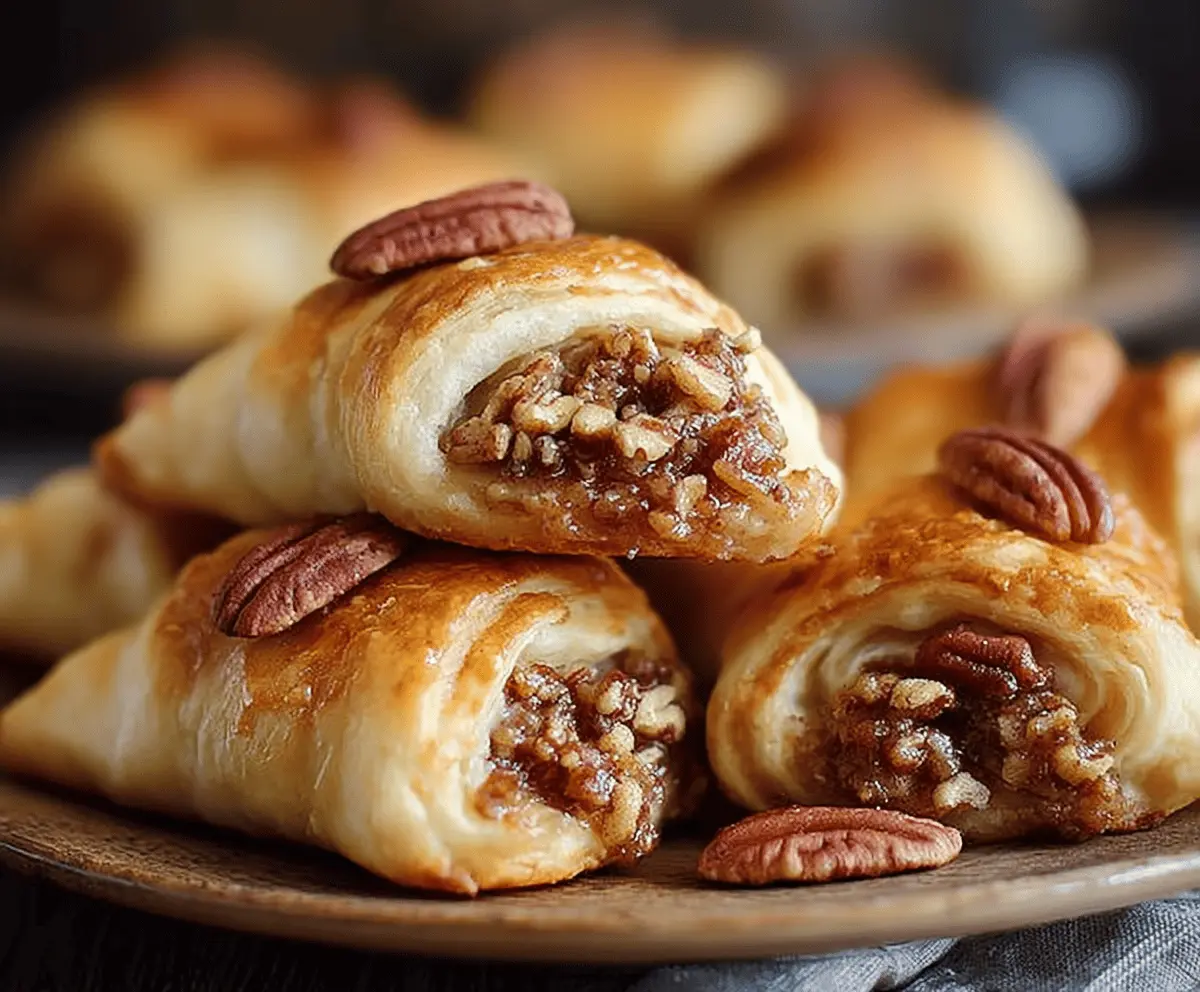 Carefully roll each triangle from the wide end toward the tip, making sure the filling stays inside. Place the rolls on the prepared baking sheet with the point side down to keep them from unrolling during baking. If you like, brush the tops with a little melted butter and sprinkle with extra pecans or brown sugar for a nice shine and texture.